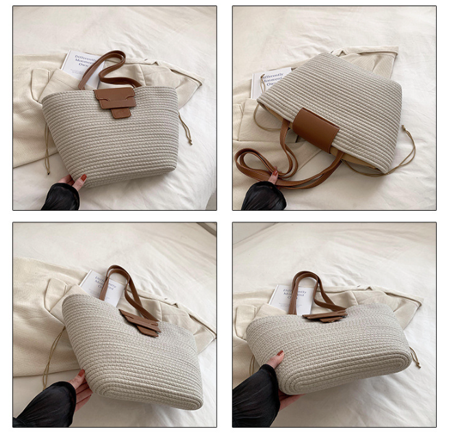 Feature highlights: This large-capacity cotton-woven straw beach tote bag is crafted from high-quality straw material, offering durability and a stylish look. Its 43*8*28 cm size and lightweight design make it perfect for travel, shopping, or beach outings. The bag features a customizable logo option, adding a personalized touch. With all-season versatility and a string closure, this handbag combines fashion and functionality seamlessly.